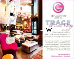 Join Girl Power Hour and The W Hotel to celebrate the launch of the new Trace Lounge and Bar with complimentary cocktails BroVo Spirits Lady-Made Liquor, passed appetizers, DJ, giveaways and door prizes from The W.
