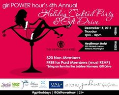 Annual GPH Holiday Cocktail Party and Gift Drive sponsored by vitaminwater zero. Santa, swag, chambord and vitaminwater zero cocktails, DJ Lifeguard from C89.5, gift drive for Jubilee Women's Center, door prizes and an ultimate holiday gift swap!
