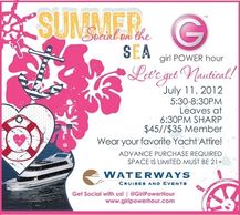 Waterways Cruises hosted a Nautical Girl Power Hour Networking event on one of their world-famous Yachts, August 28th, 2011. Guests enjoyed summer cocktails, swag, door prizes, networking and social hotness.